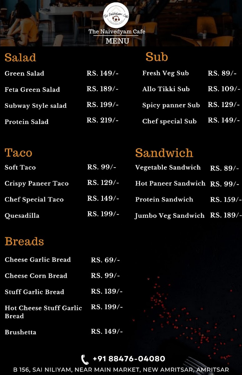 Welcome to The Naivedyam Cafe, a hidden gem nestled in the heart of New Amritsar, located conveniently on Grand Trunk Road, near Tara Wala Pull. This charming cafe is much more than just a place to grab a bite; it’s a delightful escape where culinary creativity meets comforting ambiance.